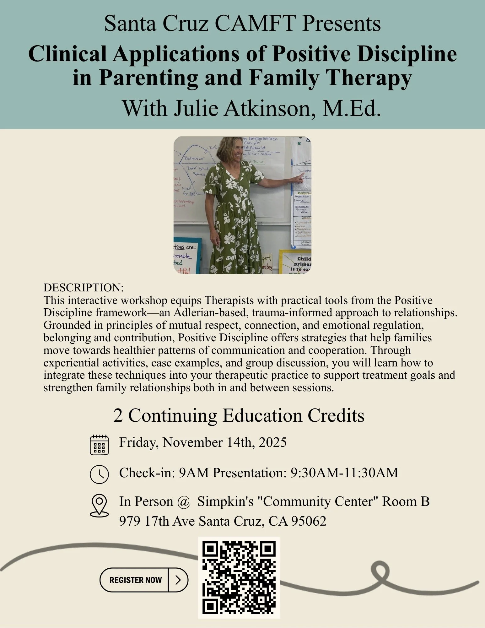 I am no longer hosting my own workshops online. Let’s see if we can work together for me to come to your school, place of faith, parent group, childcare center, workplace, professional organization, etc. I travel outside of Santa Cruz!